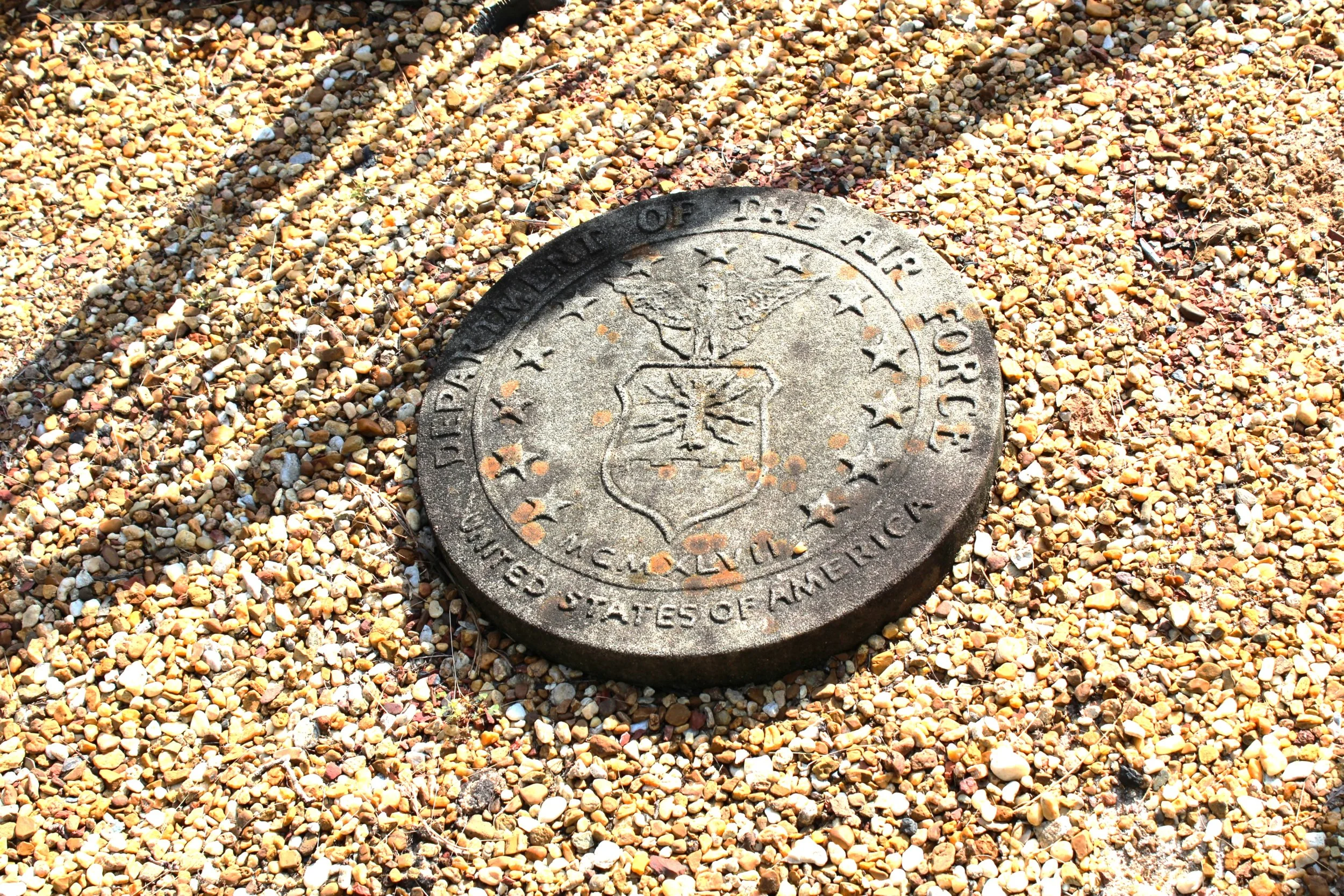 Black and white photograph of a man in military uniform, wearing a beret, with 'Retired' and 'Air Force' visible on his shirt, posing with his arm resting on a surface and looking into the camera.